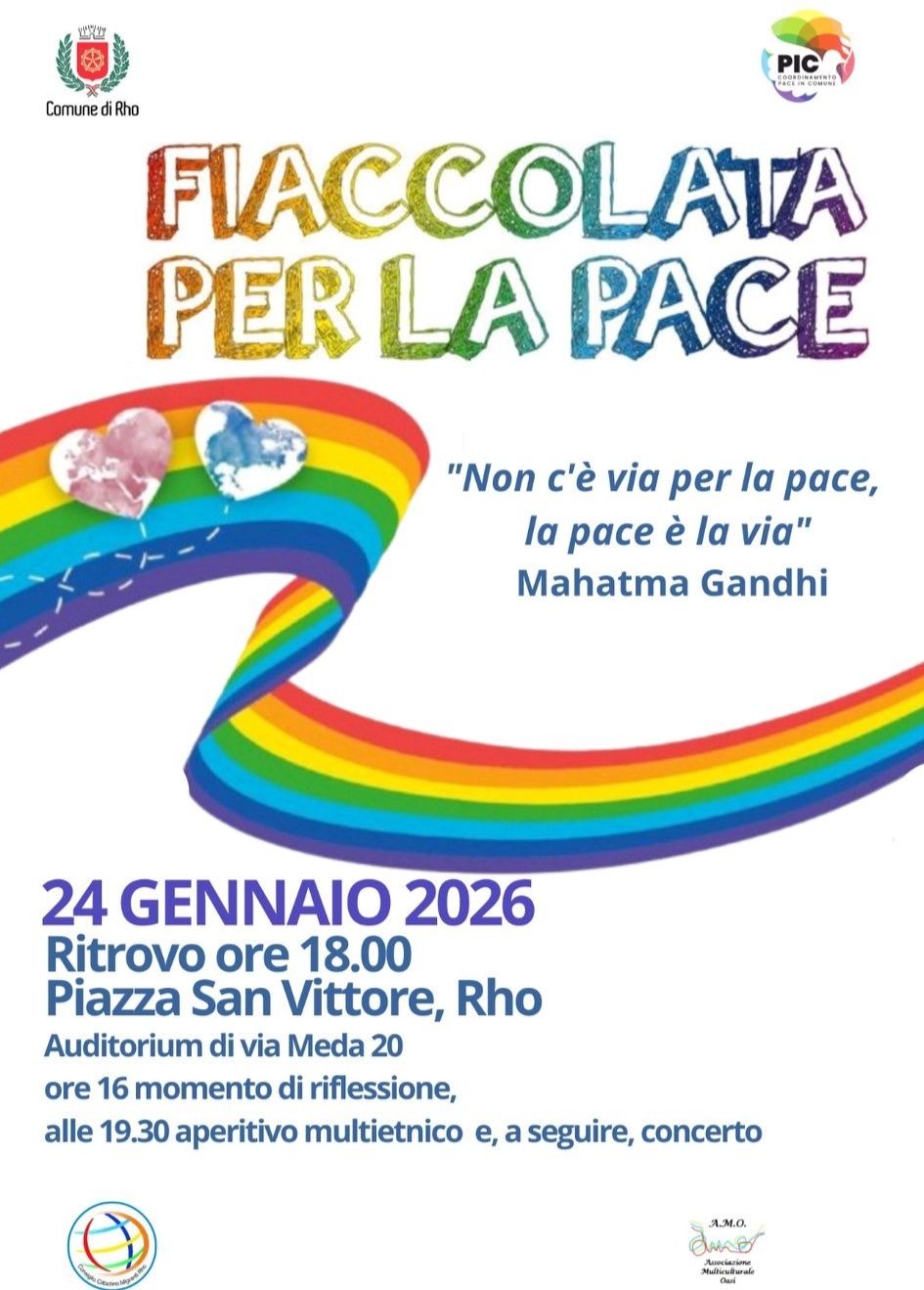 - Alle ore 18.00 l’appuntamento sarà in piazza San Vittore dove partirà la fiaccolata insieme ai rappresentanti dei Comuni che aderiranno all’iniziativa, tra cui Lainate.