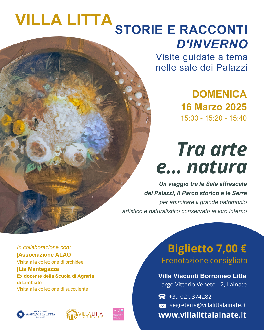 All’interno della Rassegna “Storie e Racconti d’inverno” i volontari dell’Associazione Amici di Villa Litta propongono una visita guidata alle sale affrescate dei Palazzi, al Parco storico e alle Serre per ammirare il grande patrimonio artistico e naturalistico conservato.