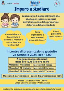 Nell’ambito del calendario di iniziative che animano la Biblioteca comunale, mercoledì 24 gennaio, alle ore 17.00, all’Ariston Urban Center, si terrà la presentazione gratuita del corso base “Imparo a studiare”.